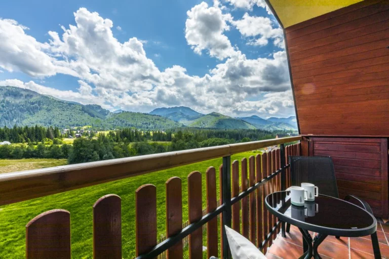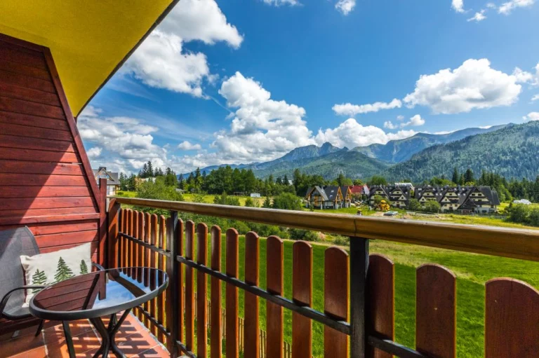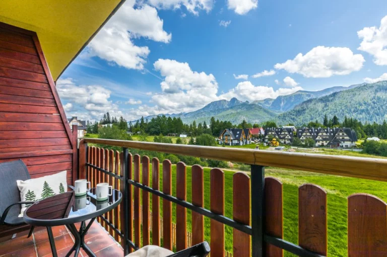 Balkon: meble wypoczynkowe i piękne widoki na góry