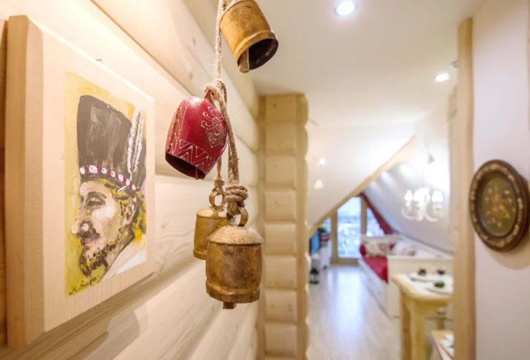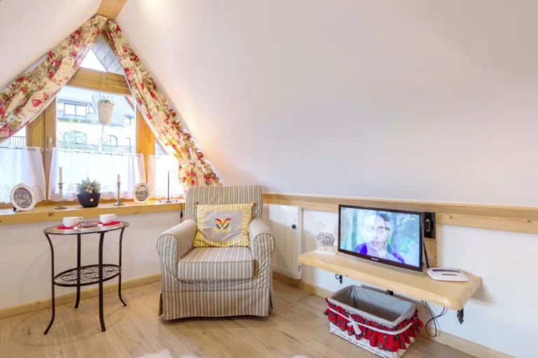 Przytulny apartament akcentami Stylu Zakopiańskiego oraz drewna o powierzchni 39 m2 składa się z salonu połączonego z kuchnią, sypialni, przedpokoju oraz łazienki. W salonie jest wyjście na balkon z którego roztaczają się piękne widoki na panoramę Tatr.