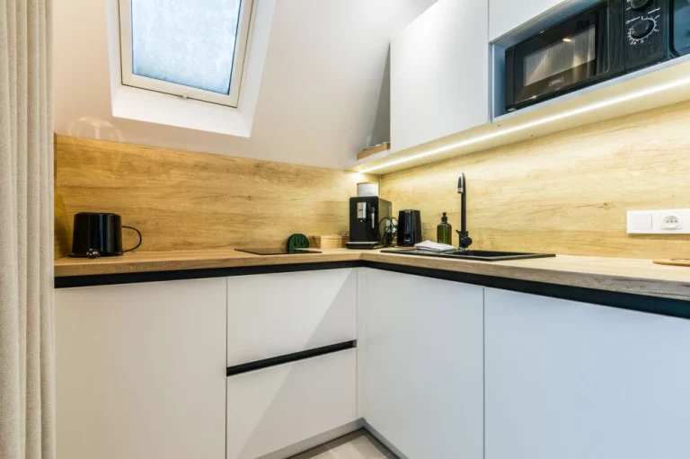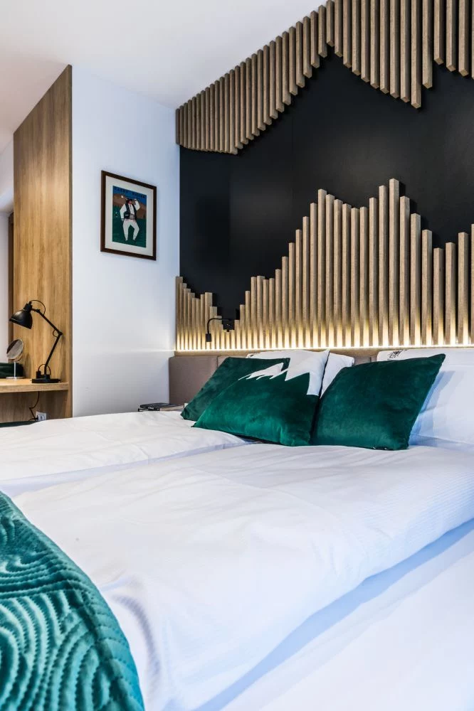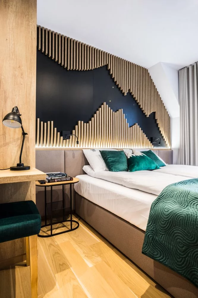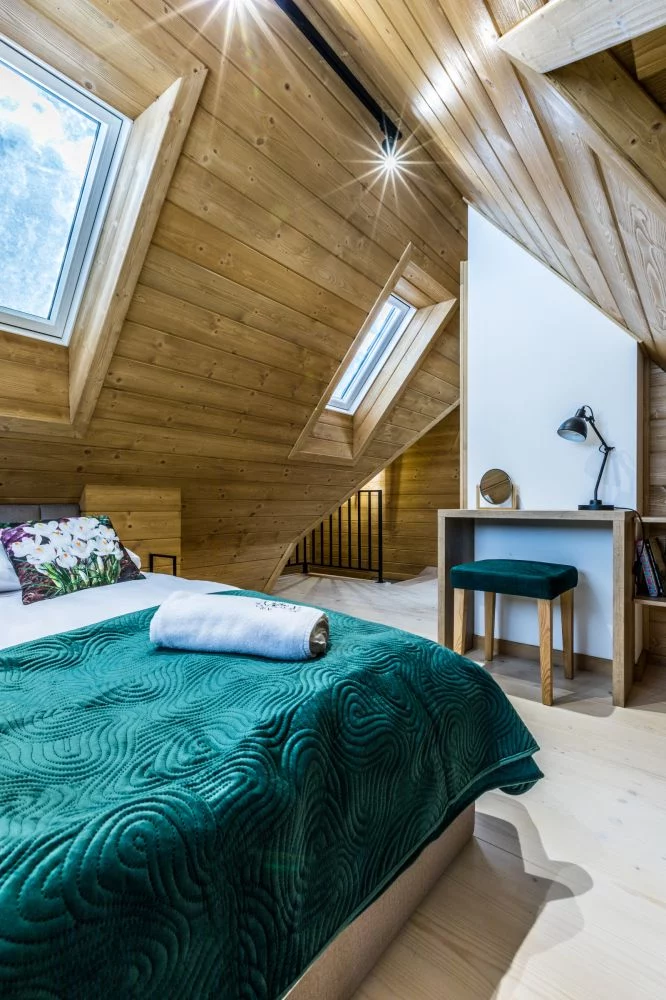 Wyjątkowa aranżacja wnętrza pomogła w stworzeniu klimatycznego miejsca. Połącznie nowoczesnego stylu oraz drewnianych tradycyjnych dodatków sprawia, że apartament jest przytulny oraz funkcjonalny.