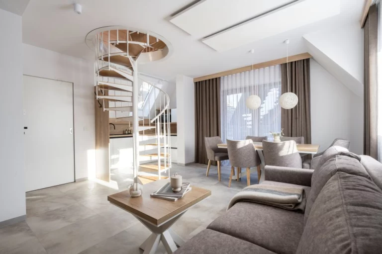Wyjątkowa aranżacja wnętrza pomogła w stworzeniu klimatycznego miejsca. Połącznie nowoczesnego stylu oraz drewnianych tradycyjnych dodatków sprawia, że apartament jest przytulny oraz funkcjonalny.