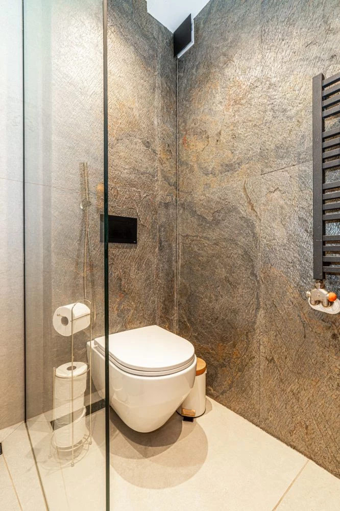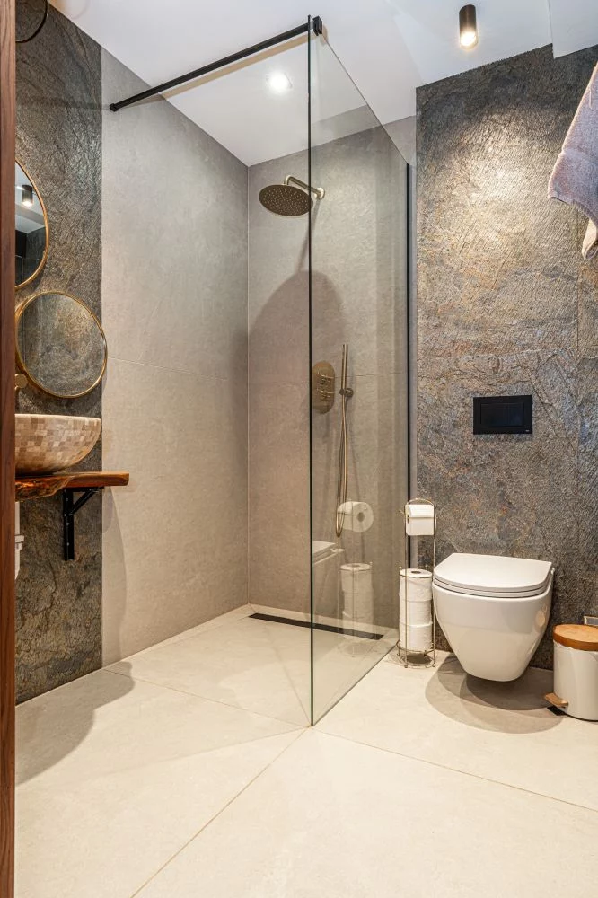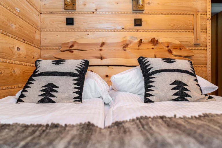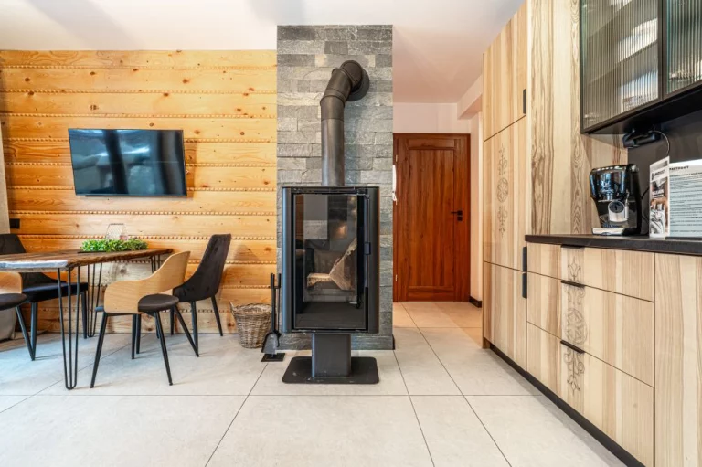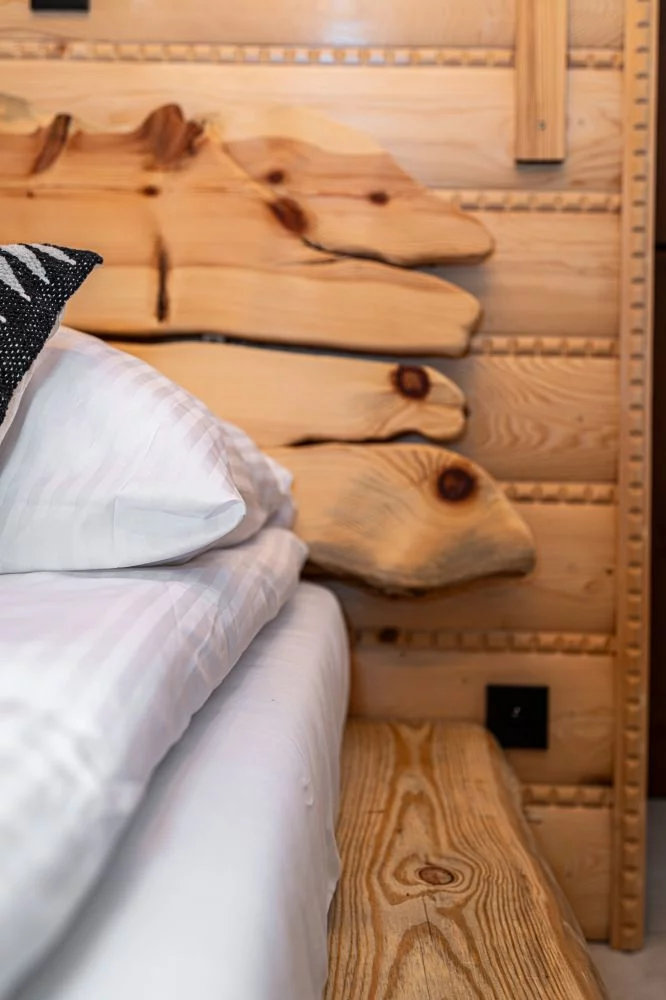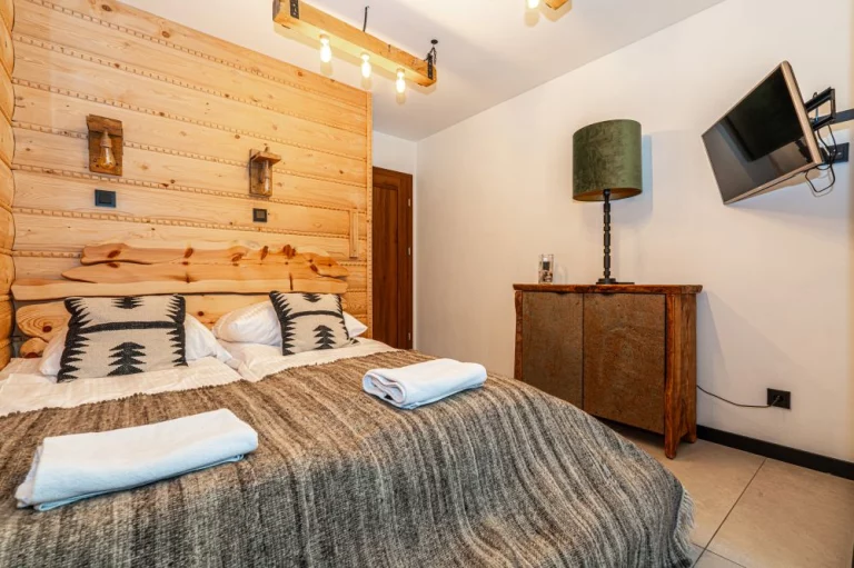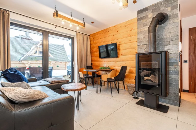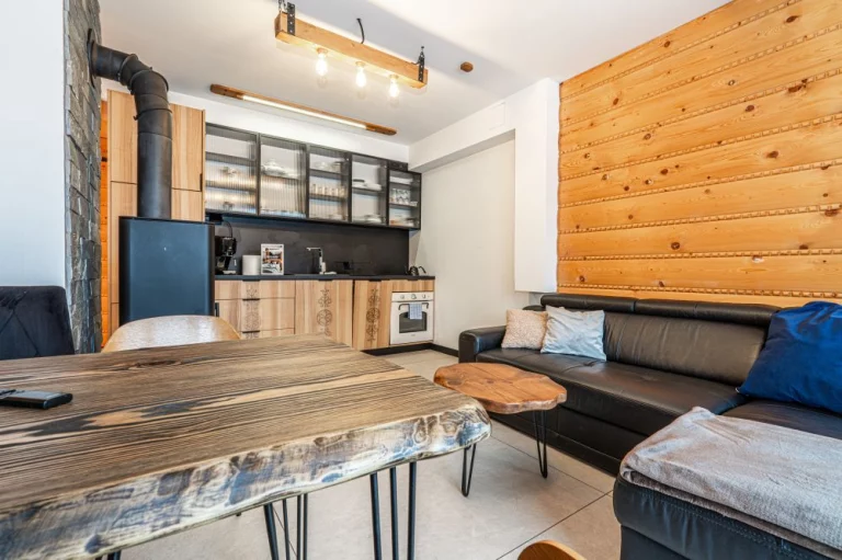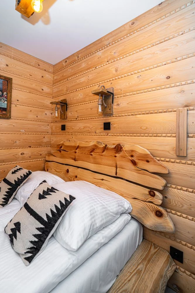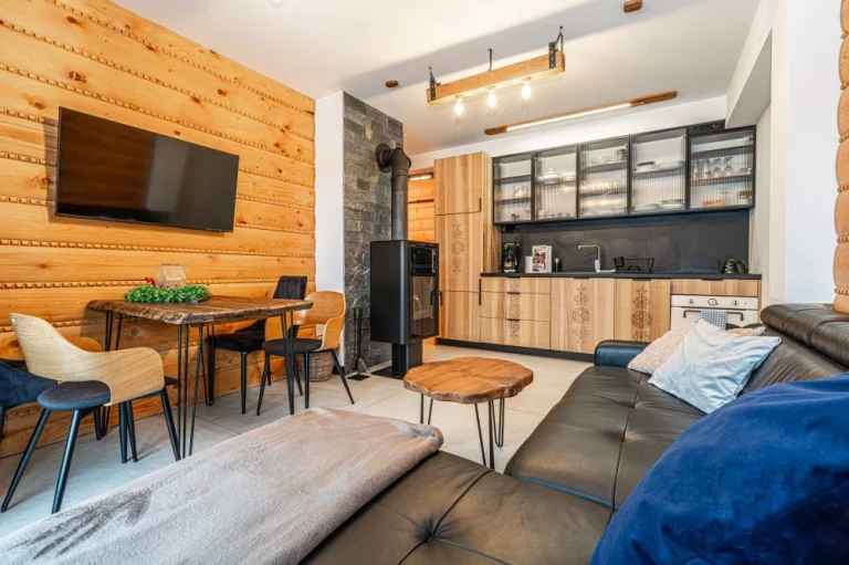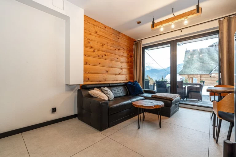 Apartament Nr 2 znajduje się w kameralnym kompleksie Schronisko Zmysłów. Posiada panoramiczny widok na majestatyczne Tatry. Szklane balkony, naturalne drewno i kamień podkreślają inspirację otaczającym krajobrazem, a jednocześnie nadają wnętrzu elegancję i ciepło.