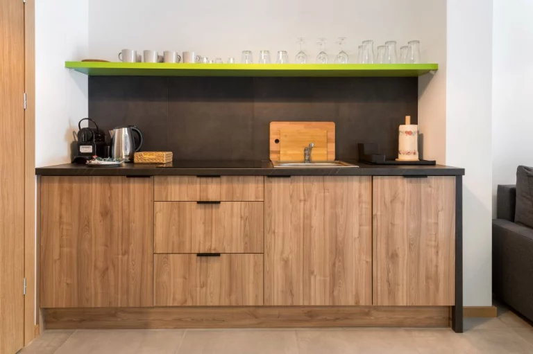 Kuchnia: zabudowa kuchenna, lodówka, ekspres do kawy, płyta indukcyjna, czajnik bezprzewodowy, zmywarka, zlewozmywak, garnki i patelnie, zastawa stołowa dla 6 osób