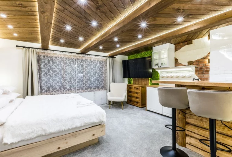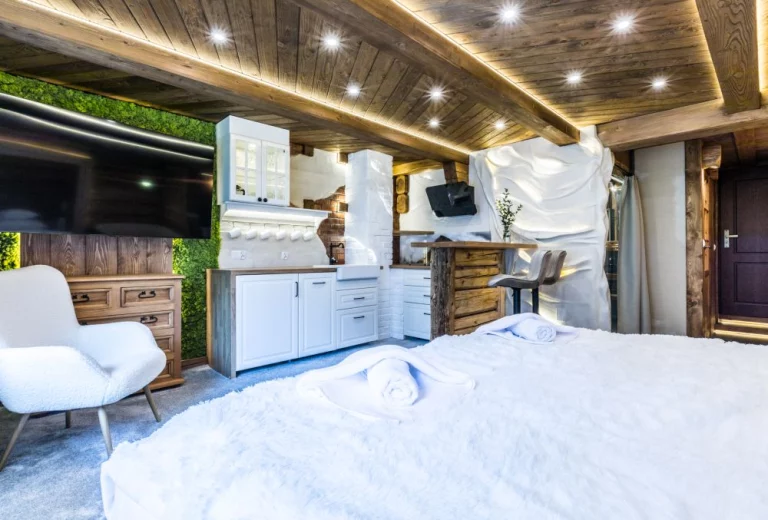 Apartament Lala Premium to nasza najnowsza propozycja dla par. Ten nowy, przytulny, wykończony drewnem apartament pozwoli nie tylko odetchnąć po aktywnym dniu i zebrać siły na kolejny, ale również spędzić niezapomniane wieczory przy niezwykle nastrojowym oświetleniu, które podkreśla charakter wnętrza.