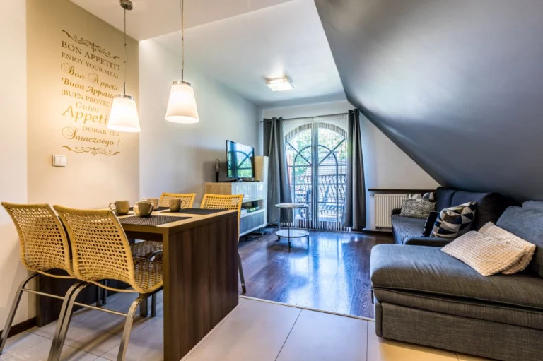 Apartament Lizbona to jednopokojowy apartament znajdujący się na 3 piętrze w kompleksie Rezydencja Sienkiewicza.