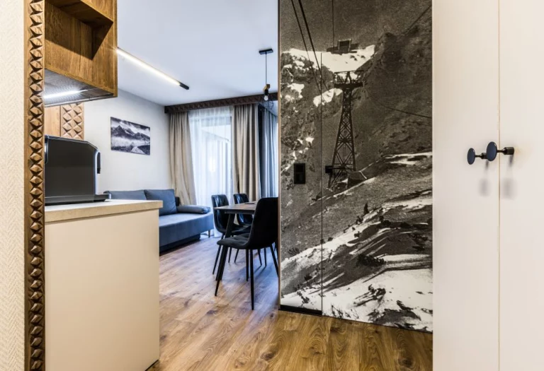Luksusowe mieszkanie o powierzchni 31 m2, zlokalizowane jest w samym centrum zaledwie 600m od słynnych Krupówek, 900m od Skoczni Narciarskiej w Zakopanem. Apartament jest usytuowany w nowo powstałym kompleksie.