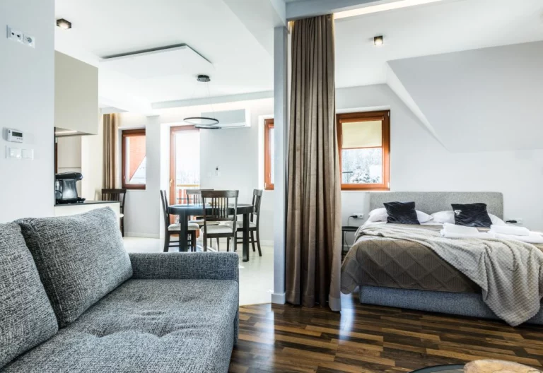 Mieszkanie o powierzchni 48 m2 mieści się w apartamentowcu. Zlokalizowane jest 2,4 km od słynnych Krupówek, 2,8 km od stacji narciarskiej Harenda i około 450 m od przystanku autobusowego. Usytuowane cichej i spokojnej okolicy z dala od zgiełku miasta na południowym zboczu Gubałówki. W pobliżu znajduje się szlak pieszy na Gubałówkę oraz widokowe trasy spacerowe w rejonie Harendy.