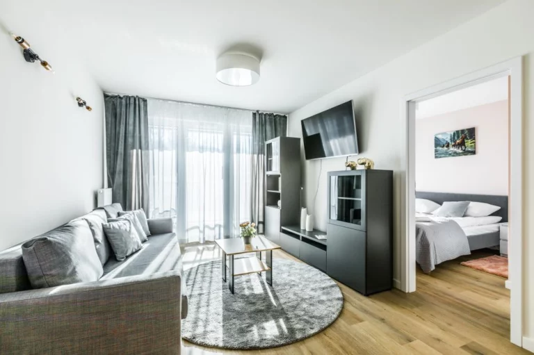 Apartament 6 osobowy zlokalizowany jest w centrum Zakopanego. Apartament znajduje się na 1 piętrze w nowo powstałym kompleksie Apartamenty Zakopiańskie. Oddalony jest od słynnej ulicy Krupówki około 2 km a od Dworca kolejowego i autobusowego zaledwie 600m, sklep spożywczy około 100m.