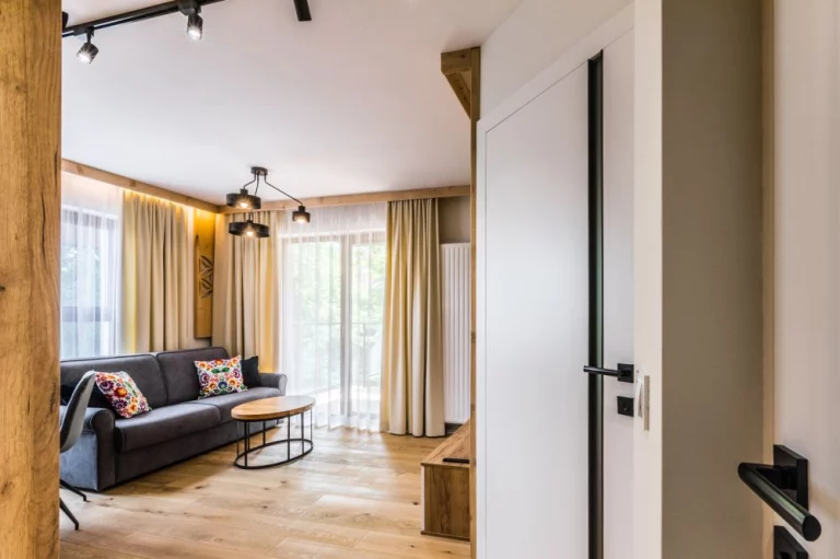 Apartament nr 6 znajduje się w nowopowstałym kompleksie Rezydencja za Strugiem. Rezydencja jest usytuowana w zacisznym zakątku Zakopanego, skąd szybko można dotrzeć na najsłynniejszą ulicę zimowej stolicy Podhala – Krupówki (1200 m), słynną ul. Kościeliską, gdzie za sprawą zabytkowej góralskiej zabudowy poczujesz klimat dawnego Zakopanego. Nieopodal obiektu znajdują się również dwie stacje narciarskie – Harenda i Polana Szymoszkowa oraz szlaki turystyczne wiodące m.in. na Giewont, czy też do malowniczej Doliny Strążyskiej.