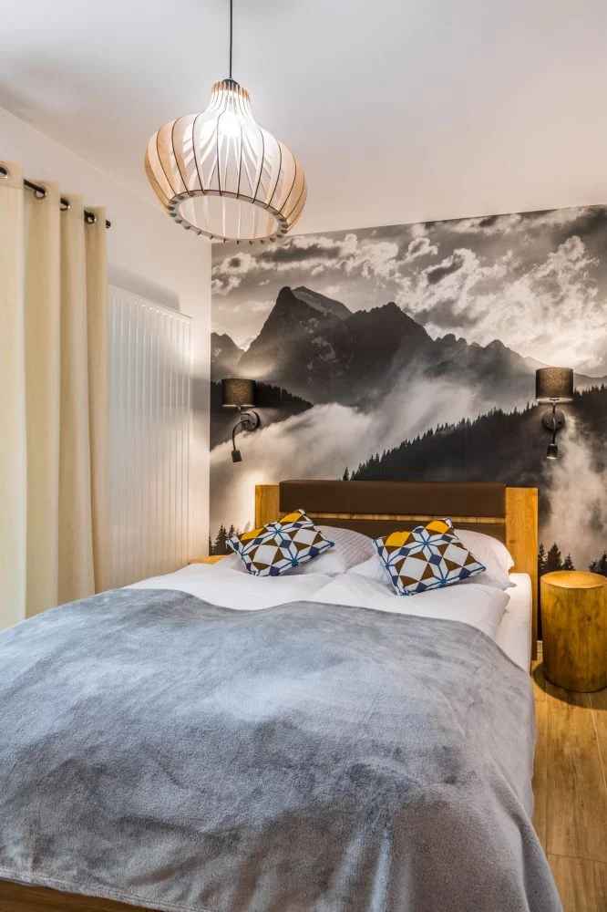 Jasne, przytulne i komfortowe przestrzenie zapewnią Państwu odpoczynek, a subtelne elementy regionalne wieńczące wnętrza wprowadzą ducha Podhala.