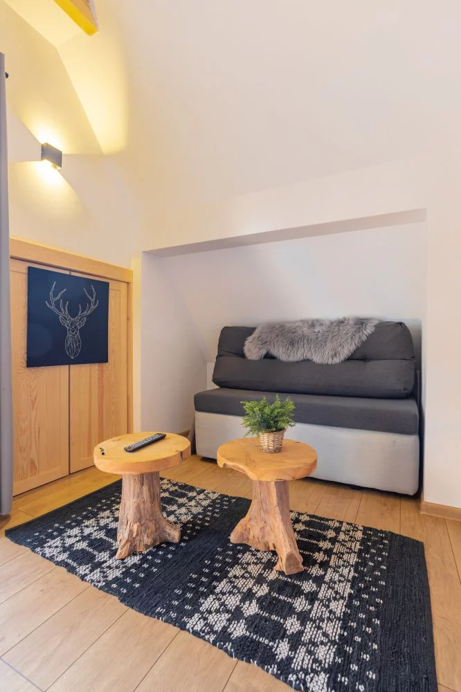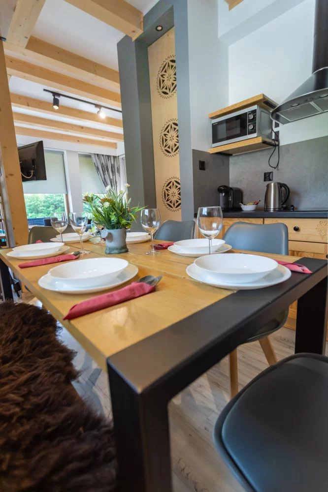 Domek jest w pełni wyposażony w udogodnienia i urządzony z dbałością o każdy szczegół. Pomimo wielu gustownych ozdób, których u nas nie brakuje, wiemy, że największe wrażenie robi widok z okna – Tatry o każdej porze roku prezentują się zjawiskowo.